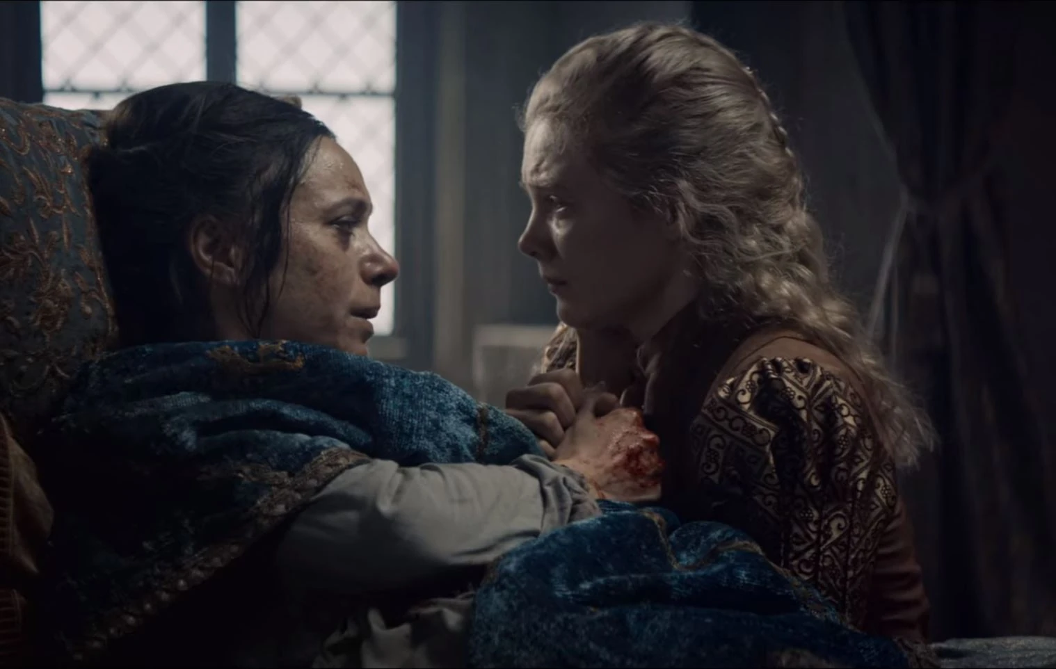 Vážně raněná Calanthé se loučí se svojí vnučkou Cirillou.