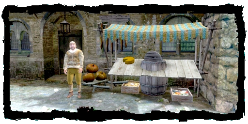 Vypadá stejně jako obchodník z Novigradu, který dal Geraltovi 100 orénů v kapitole I. Je velmi přátelský a ráno přichází nejdříve a v noci odchází poslední (pokud vůbec odchází!). Najdete ho denně od 6:00 do 23:00, ale jeho obchodní doba je kratší, před 7:00 neprodává.