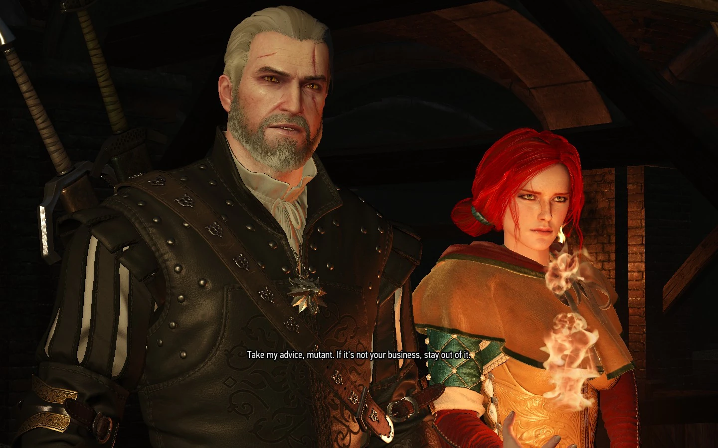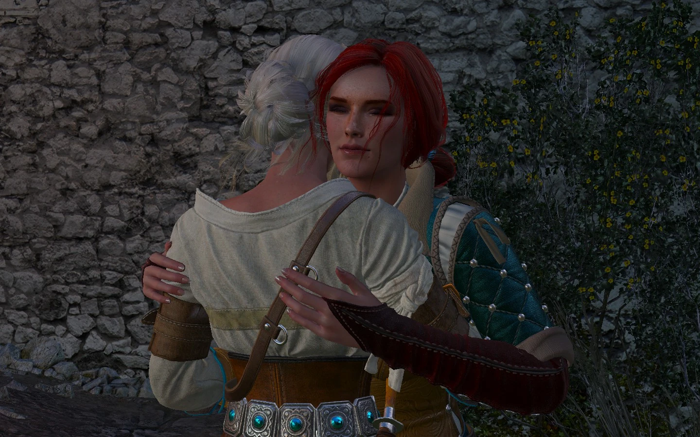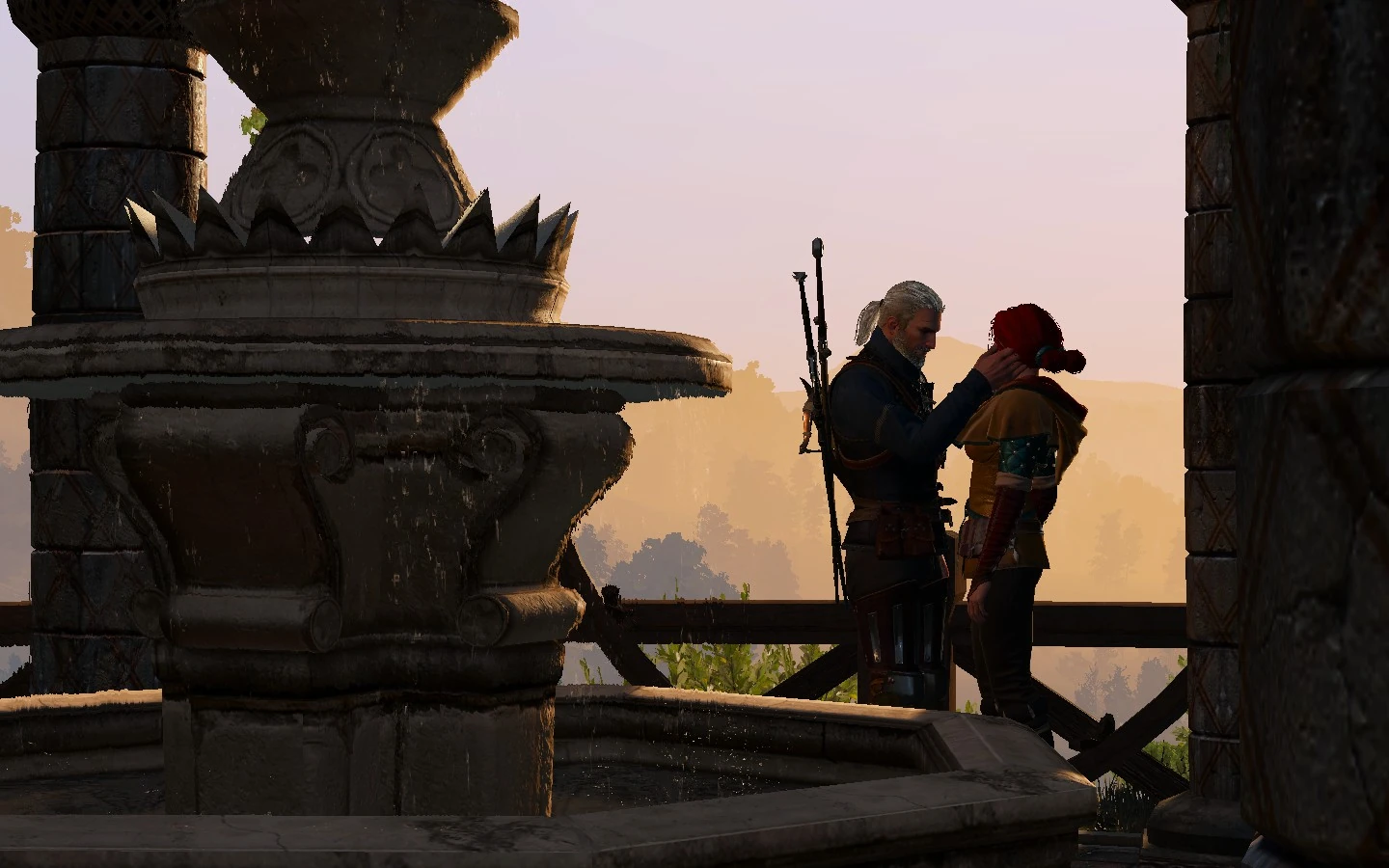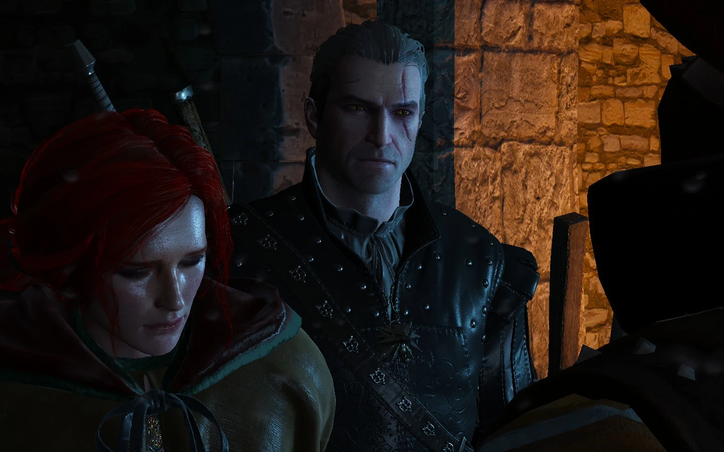 Ačkoli můj vztah k Triss byl vždy povahou bratrský, Geralt z Rivie v jednom okamžiku její šarm shledal neodolatelným. Od té doby byli tito dva provázáni city mnohem hlubšími než povrchním záletem pomíjívé lásky.